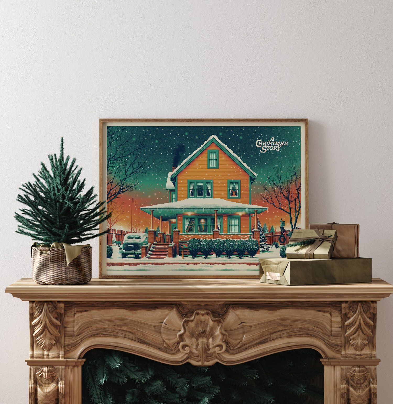 Over the past few years we’ve continued our tradition of creating art prints representing the famous homes from some of our favorite holiday movies. New this year is the classic home of Ralphie from A Christmas Story and while the house itself is a modest one, it’s chock full of imagery from the movie from the iconic leg lamp to the Bumpus hounds and all the memorable moments in between.