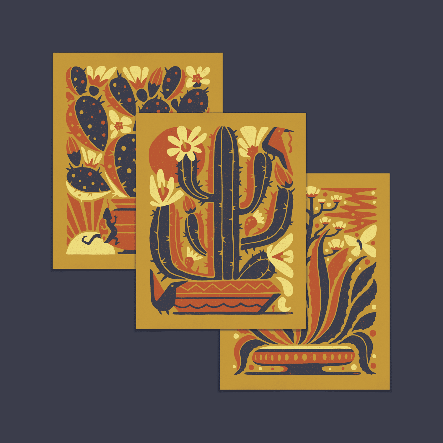 • Three 11″ x 14″ three-color screen prints