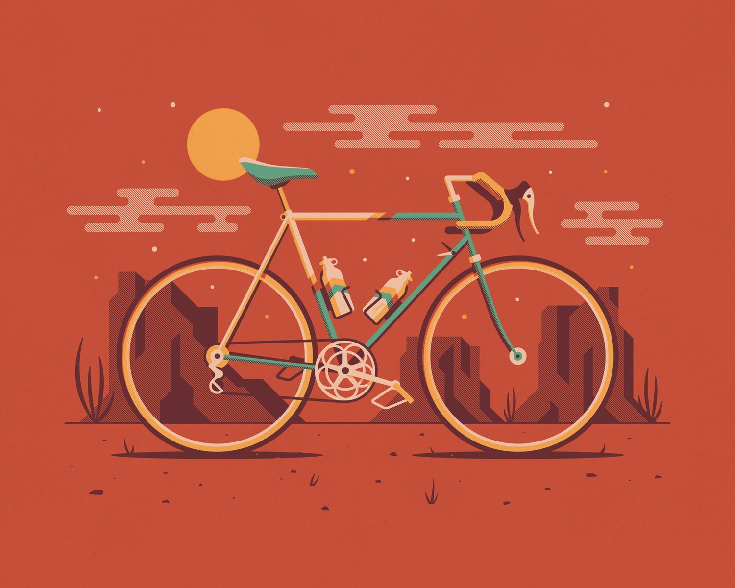 Our latest art print series has rolled into town and this time we’re featuring the wide world of bicycles! The new Cyclist Series of art prints depicts five different bicycles each in its own environment and featuring its own unique accessories. Each print is a 20” x 16” four-color screen print on 100lb French Paper cover stock. The series is comprised of Mesa (road bike), Durango (mountain bike), Downtown (fixie), Venice (guy’s beach cruiser), and Malibu (girl’s beach cruiser). Check out additional images of the prints below, our initial sketches, as well as a process video documenting the creation of the prints.