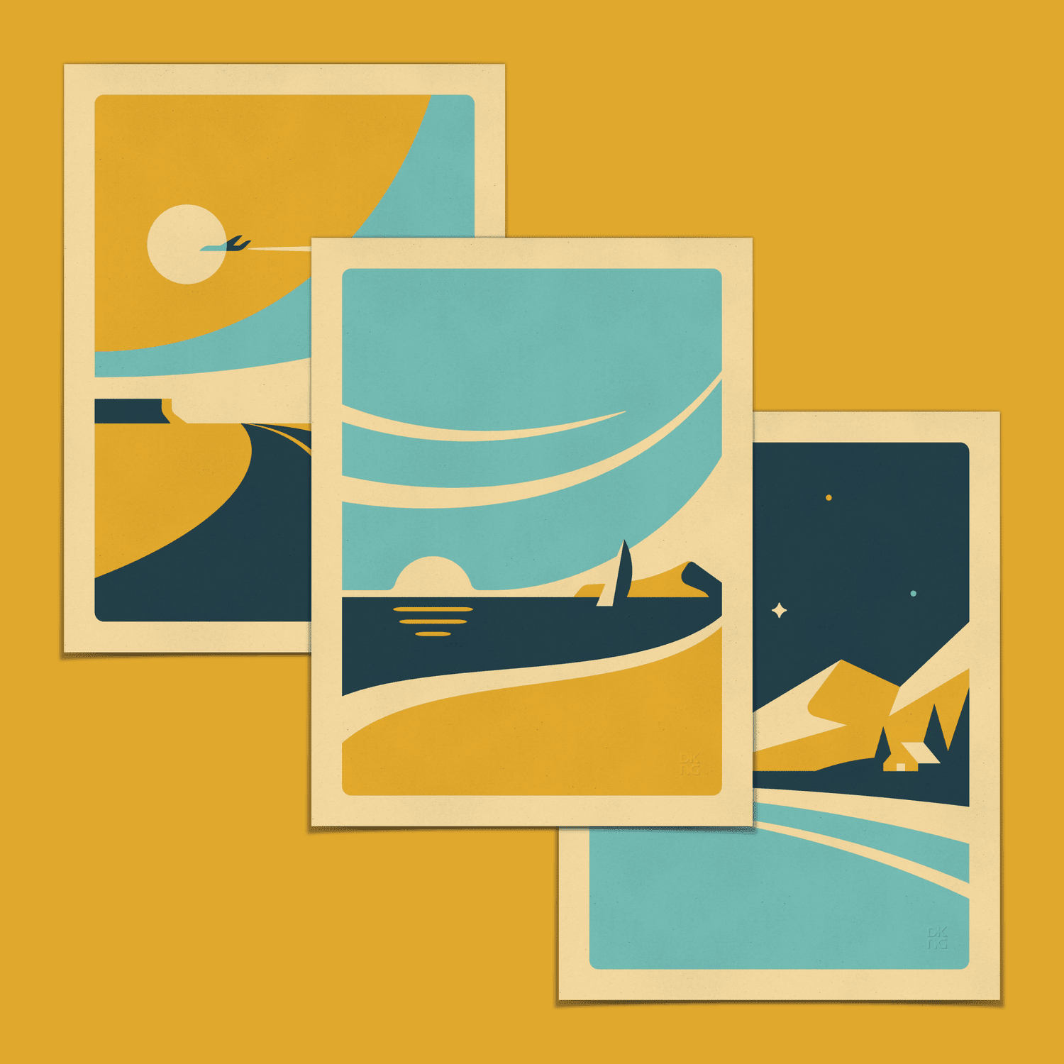 • Set of three, three-color screen prints